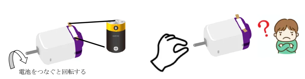 小学校の理科の実験でもおなじみのモーターに乾電池をつなぐと回転するのはご存じの通りです。では、モーターに乾電池をつながずに軸を手で回したらどうなるかご存じでしょうか?