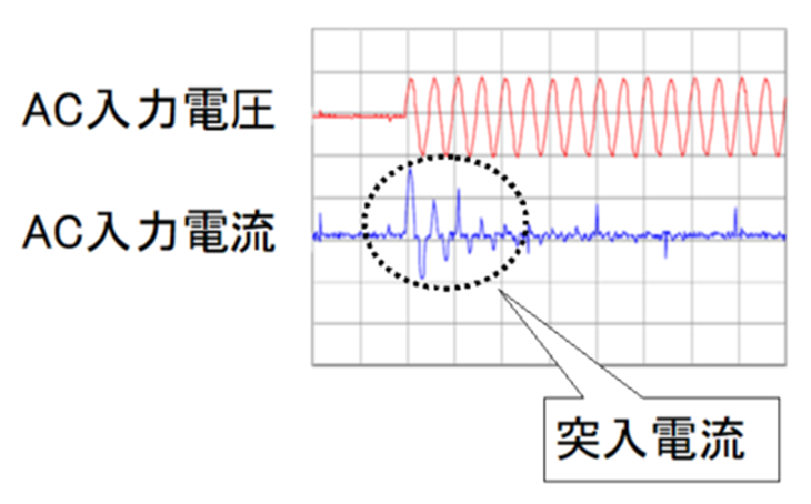 かなりおおざっぱになりますが、様々な電気製品の電源スイッチをOFFの状態からONにしたとき、ONの直後に大きな電流が流れます。これをラッシュ電流と呼び、機器によって若干名称が異なります。モータが組み込まれた機器の場合はモータが回転を始めるときの電流であり始動電流(あるいは起動電流)、スイッチング電源が組み込まれた機器の場合は突入電流 (Inrush current)と呼びます。本稿では突入電流について解説させていただきます。