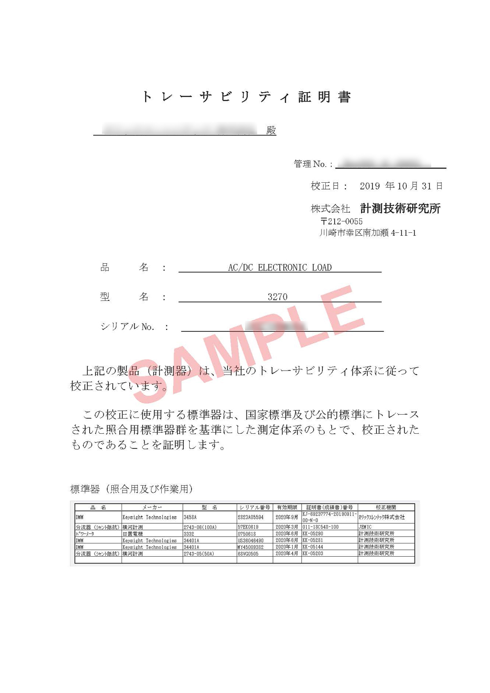 修理ご依頼時に検査成績書(型式:製品型式XXX/REC)をご注文いただきますと、以下3点の書類が製品に添付されます。
