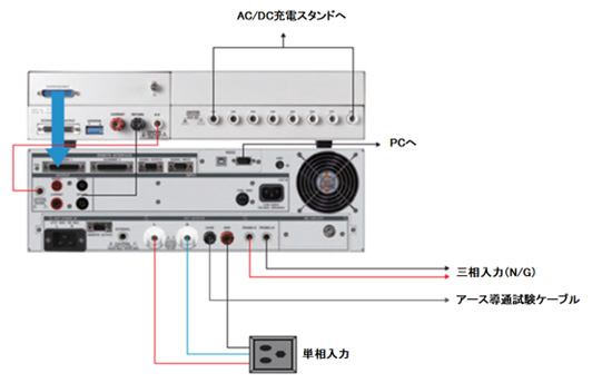 耐電圧試験及び 絶縁抵抗試験を実施するには、3つの標準すべてが必要です。 IEC 62196 及び G/T 20234.2 には、ACアース導通試験が必要です。電気システムと規制に応じて、車両と充電スタンドのソケットとプラグは2極から4極になります。