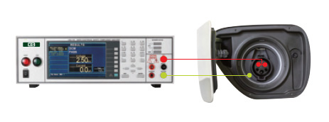 誤って充電されたアクセス可能なシャーシ等の金属部分は、ユーザーが怪我をするのを防ぐために、障害電流が大地アースに流れる必要があります。したがって、AC アース導通試験を実施するには、IEC 62196及びG/T 20234.2が必要です。25A acを60秒間注入し、接触可能な金属部分と大地アースの間の抵抗が0.05Ω未満かどうかを測定します。