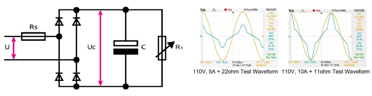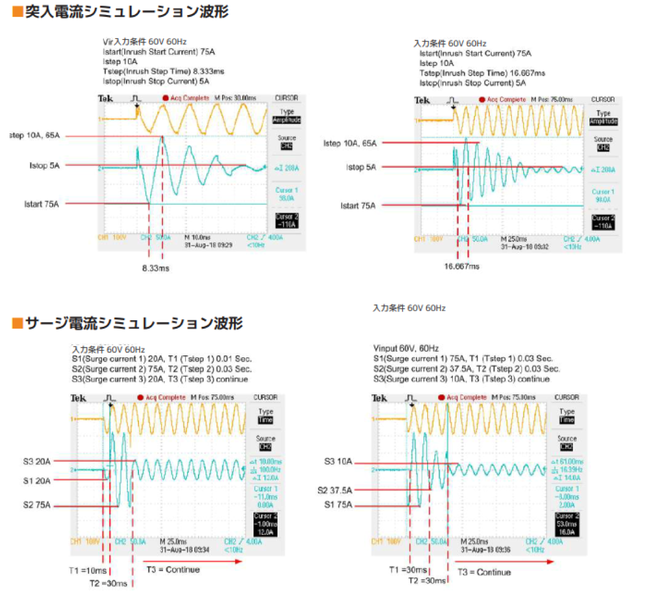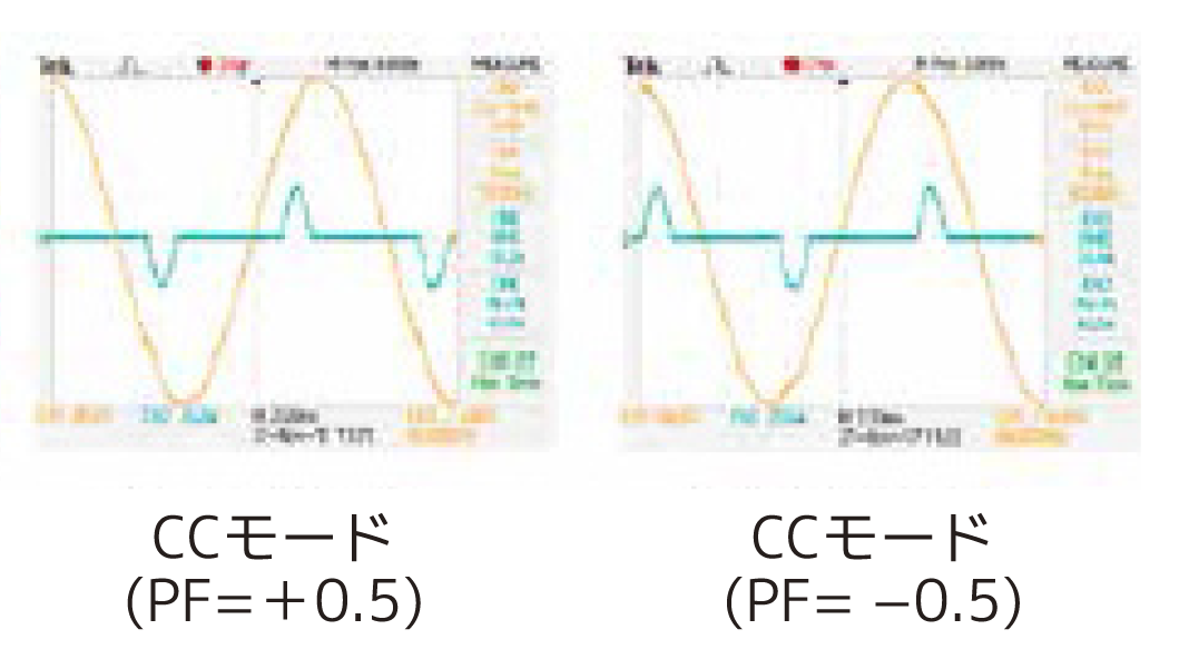 力率(PF)を負荷模擬させることで、上記問題点が発生した場合でも、電源として正しく動作できるかを確認することが可能です。