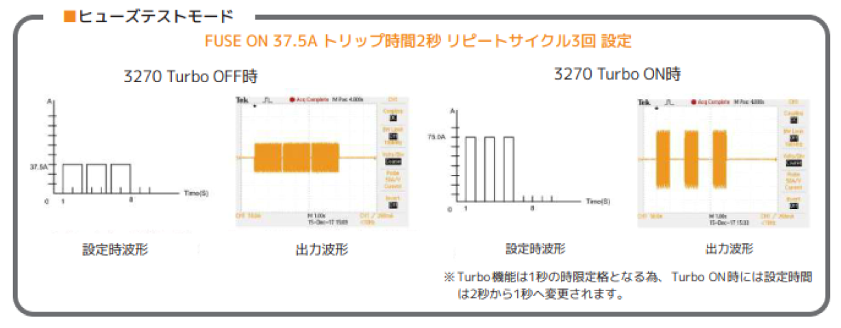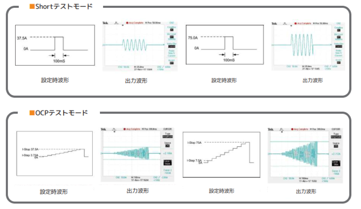 (4)専用モード:OCPテスト、OPPテスト、Shortテスト、ヒューズテスト、バッテリー放電テスト、突入電流シミュレーション、サージ電流シミュレーション