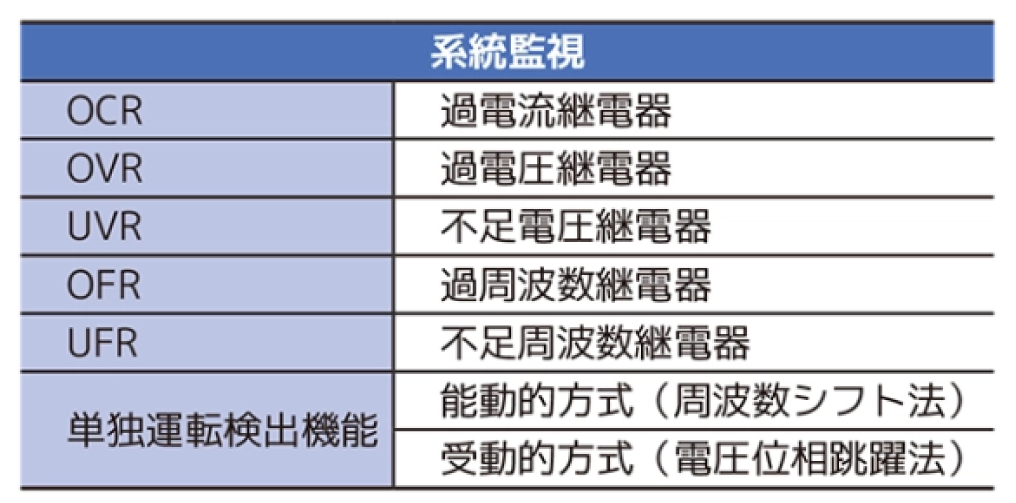 系統連系保護装置認定試験に準拠した、系統監視ならびに保護機能を装備しており、一般的な市販パワーコンディショナと同等の監視・保護機能を有し、エネルギーを安全に無駄なく循環させることができます。各種系統監視機能は任意の値に設定が可能です。