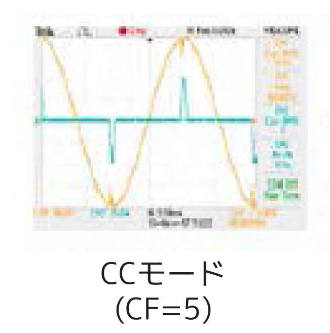また交流電子負荷にはリニアCCモードがあります。交流電源からの出力が正弦波以外にも、UPS矩形波や電圧ステップ出力に対応した負荷モードとなります。