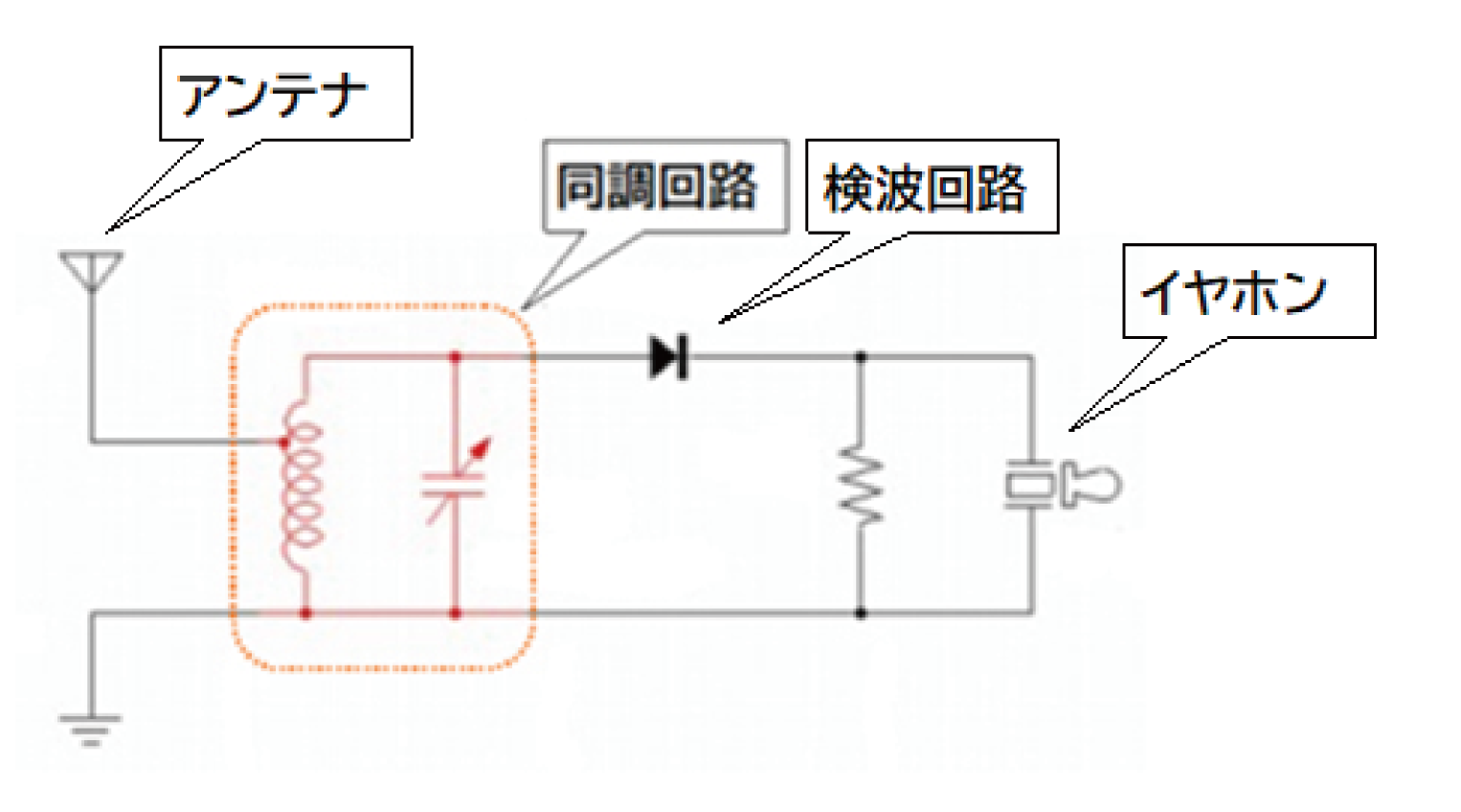 ラジオの内部で復調が行われていることはわかりましたが、この復調の方法はAMとFMでは異なり様々な方法がありますので、ここでは割愛させていただき、最もシンプルなAMラジオの基本形についてとりあげてみたいと思います。