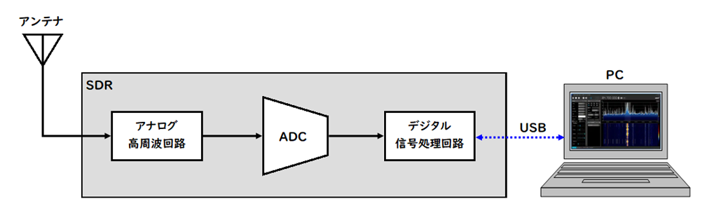 | PC | SDR用ソフトウエアによりラジオに必要な様々な機能を提供します |