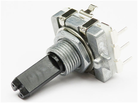 | インクリメンタル方式 | ツマミを回すことによって内部の円盤が回転する。この円盤には規則的なパターンでスリット(穴)があいており、スリットの裏側に設置したLEDの光が断続的になる。この光のパターンを電気信号に変換し、回転方向や回転速度などを知ることができるというもの。 |