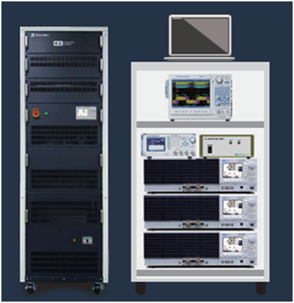 燃料電池フルスタックシステム(100kW以上)における内部インピーダンス測定は、開発や評価に欠かせない重要なプロセスです。しかしながら、高電圧・大電流を扱う試験環境は強いノイズが発生し、小さい信号を正確に測定するという難易度が高い課題があります。「FCスタック インピーダンス測定システム」では、優れた耐ノイズ性と高度な信号処理技術を活かし、厳しい測定環境下でも安定した高精度のインピーダンス測定を実現します。