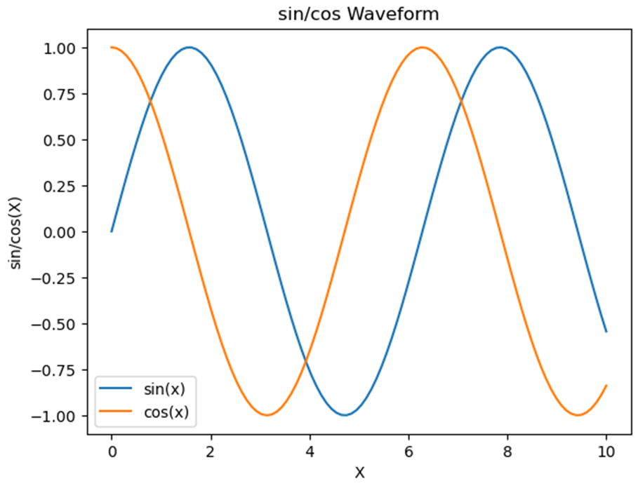 numpyを使ってsin(x)とcos(x)のデータを生成します。