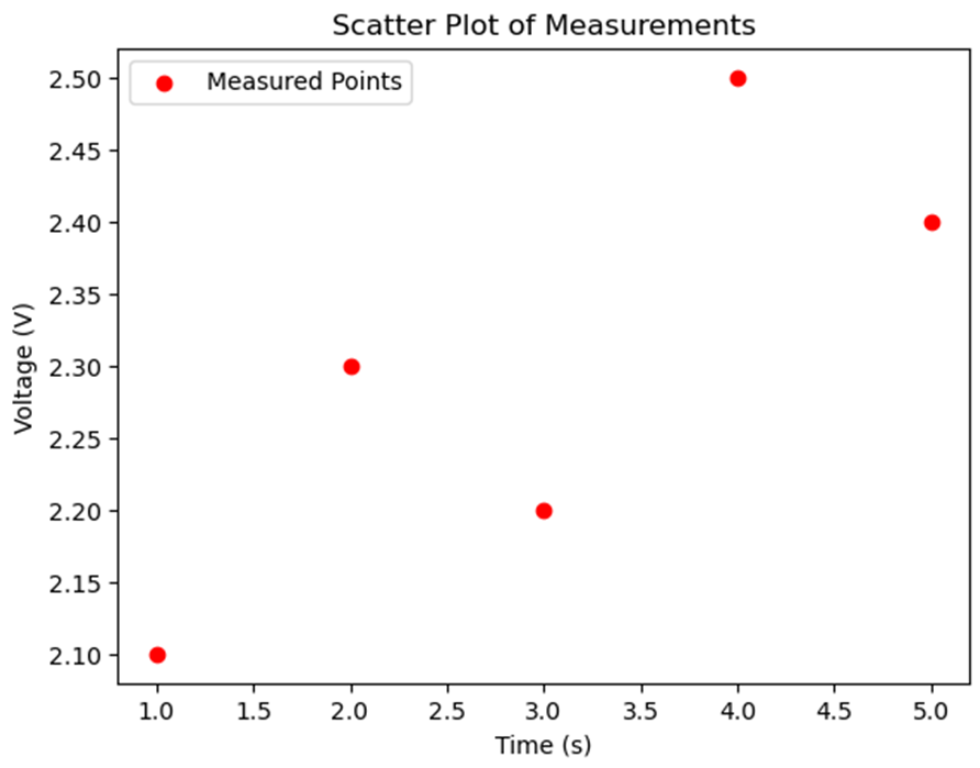 y = [2.1, 2.3, 2.2, 2.5, 2.4] # 縦軸(例として測定値)