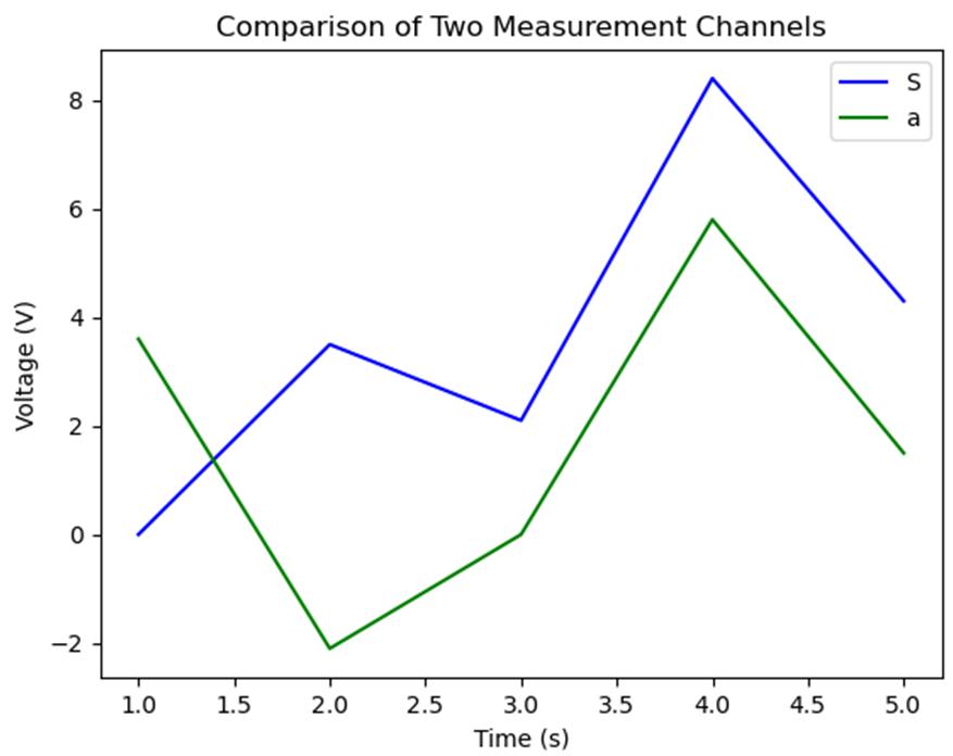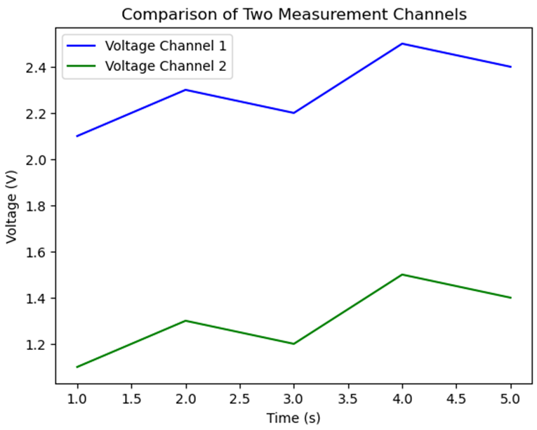 異なる測定チャネルのデータを比較する折れ線グラフが作成されます。