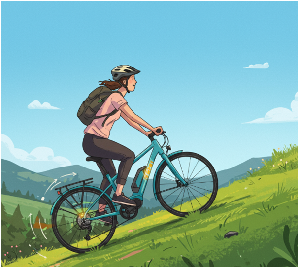 坂を登るときは、自分の力でペダルを漕ぎ、たくさんエネルギーを使います。