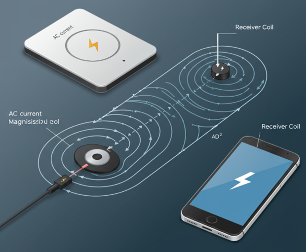 仕組みは、簡単に言うと「電磁誘導」や「磁界共鳴」の原理を活用しています。理科の授業で「コイルの中に磁石を入れると電流が流れる」という実験を覚えていますか?それと同じように、充電器側のコイルが発生させた磁場が、スマホなどのデバイス側のコイルを通じて電気に変わるのです。