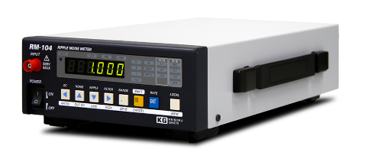 スイッチング電源の出力に現れるリップルノイズ測定は、出力に定格電流を流した状態で測定するのが基本です。当社製電子負荷Load Stationシリーズで負荷電流を流しながらワンタッチでリップルノイズの測定が可能です。また、Load StationシリーズはオプションでRM-104と同等のリップルノイズ測定モジュールを組み込むこともできます。