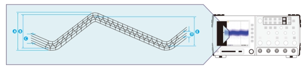 リップルノイズメータは以下のようなリップルノイズ波形(模式図)において、A~Eの5種類の測定に対応可能です。
