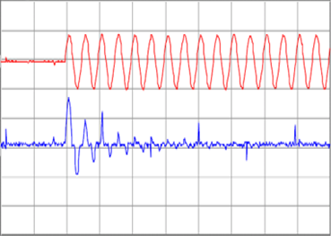 この図ではわかりやすくするために完全な直流ではなく、少しだけ「山」の影響が残っています。(これをリップルと呼びますが、本題とそれるのでここでの説明は割愛します)実際は直流の出力端子(+)と(-)に何も接続されていない(電流が流れていない)のでコンデンサから放電されることは無いため、もっと直流らしく平坦になります。