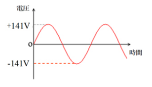 最初に交流電圧波形の基本をおさらいしておきましょう。例えば一般家庭で身近なACコンセントの電圧波形は次のようになっています。