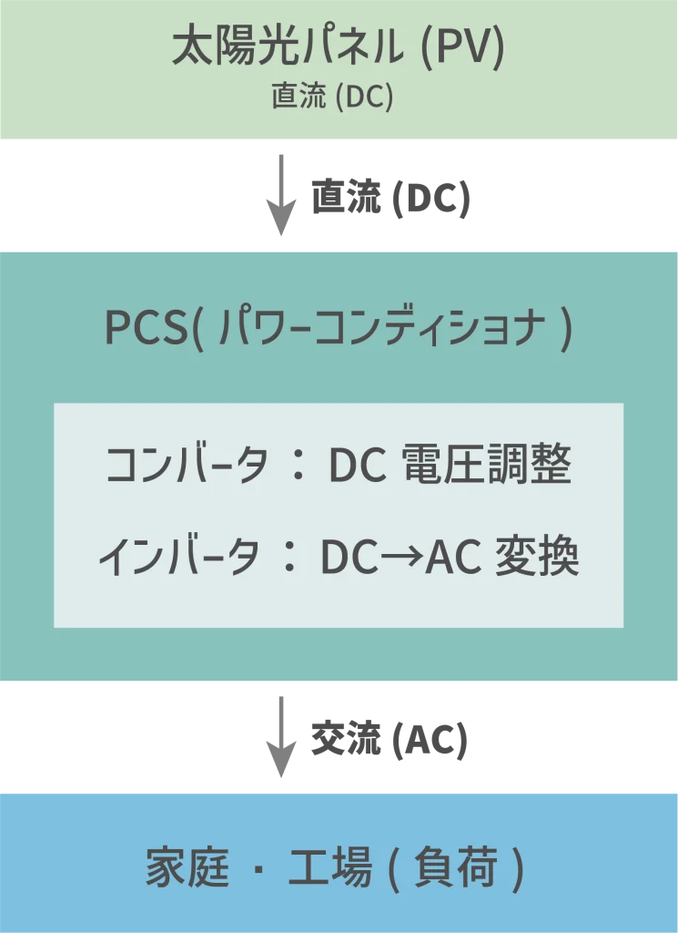 PCSは、単なるインバータやコンバータとは違い、それらを内部に含む“上位のシステム” です。