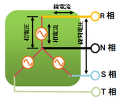 | 線間電圧 | = 相電圧 | = 相電圧×√3 |